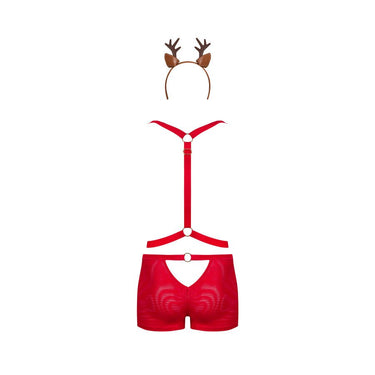 Set Sexy Natale: Imbracatura rossa, boxer in rete e orecchie di renna